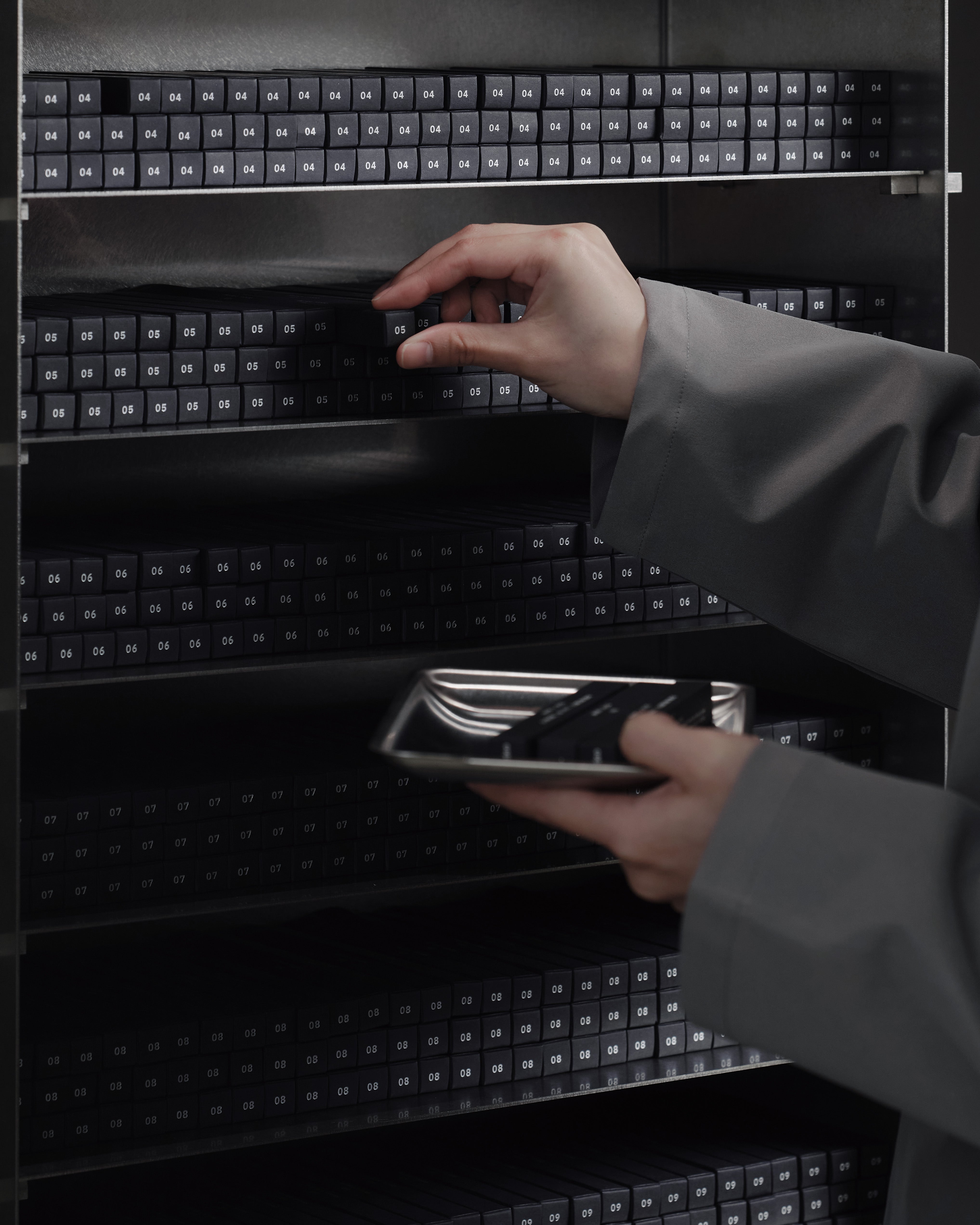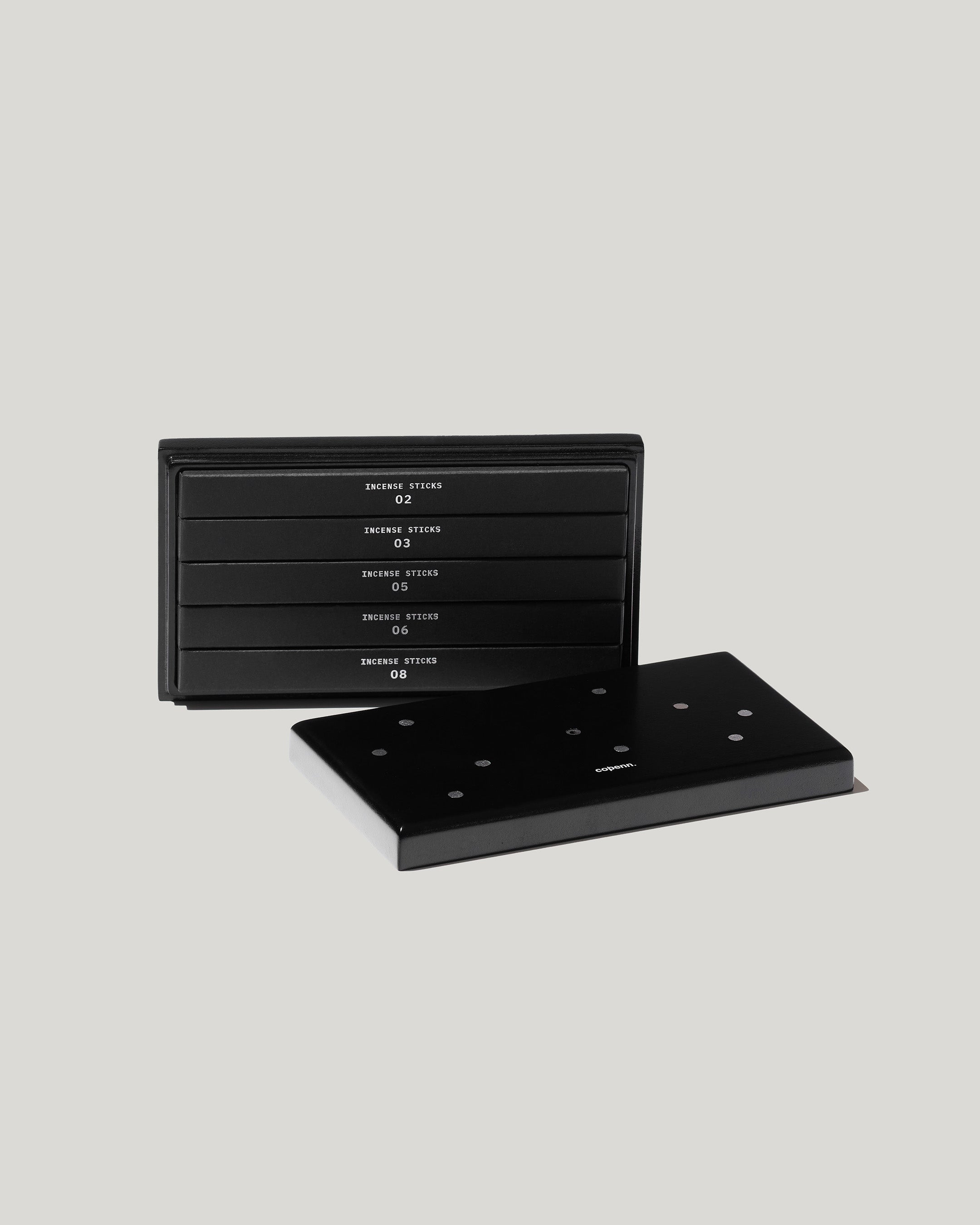A collection of ten incense scents, numbered O1–1O, presented in a distinctive black stick form. Composed from wood powder and natural charcoal, each piece is made to carry a different scent and atmosphere, allowing a more personal and intuitive way of choosing what lingers in the space.